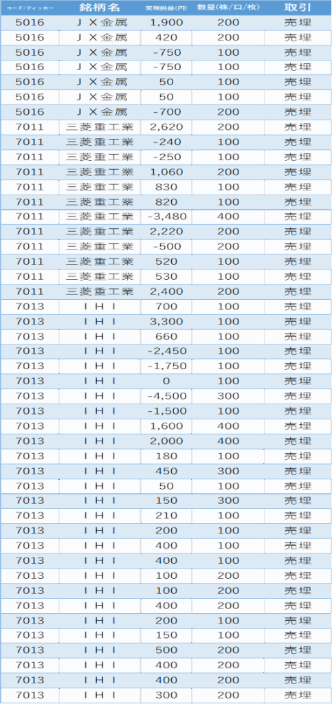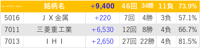 いつも通りの三菱重工・7分割されたIHI・最近強いJX金属を触ってみた。